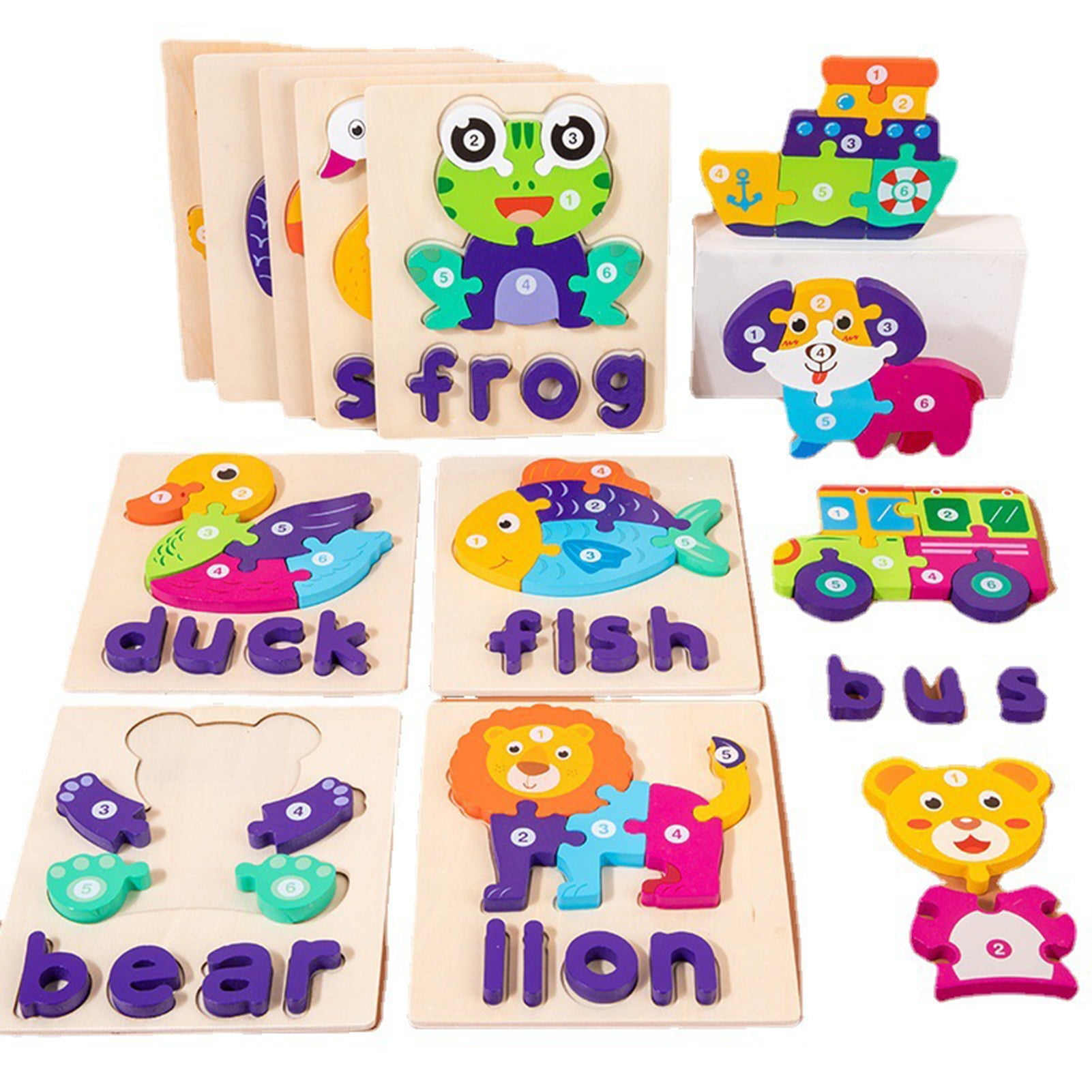 Kripyery Puzzle Matching Game Smooth Surface Cartoon Pattern Wooden Toddler Jigsaw Diy Assembling Puzzle Sensory Toy For Children Walmart Com